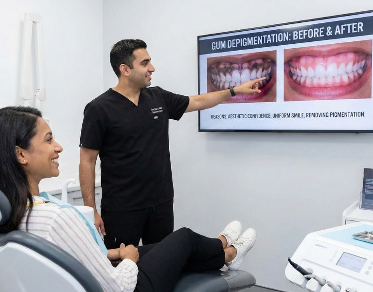 Many patients seek treatment to achieve pink, healthy-looking gums that enhance their smile and complement their teeth. Gum depigmentation is a safe, minimally invasive cosmetic procedure that removes excess melanin and restores a more uniform pink color.